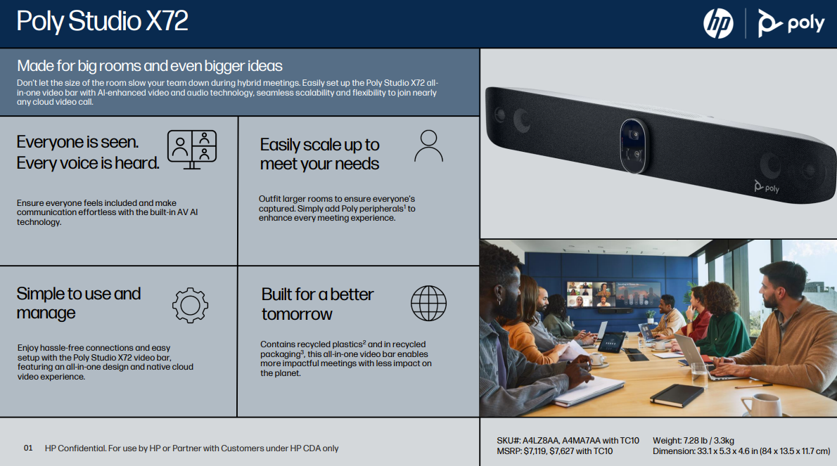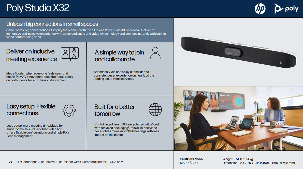 HP’s Poly collaboration portfolio has a long history of innovating with AI and delivering premium video and audio experiences across Video, Phones, Headsets, and Software.