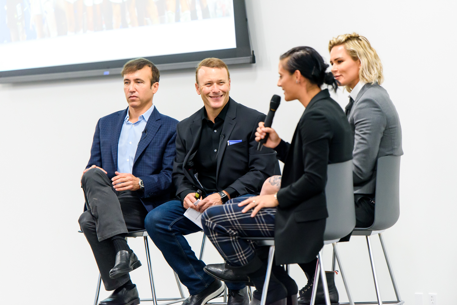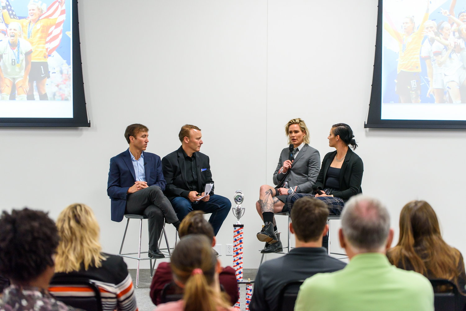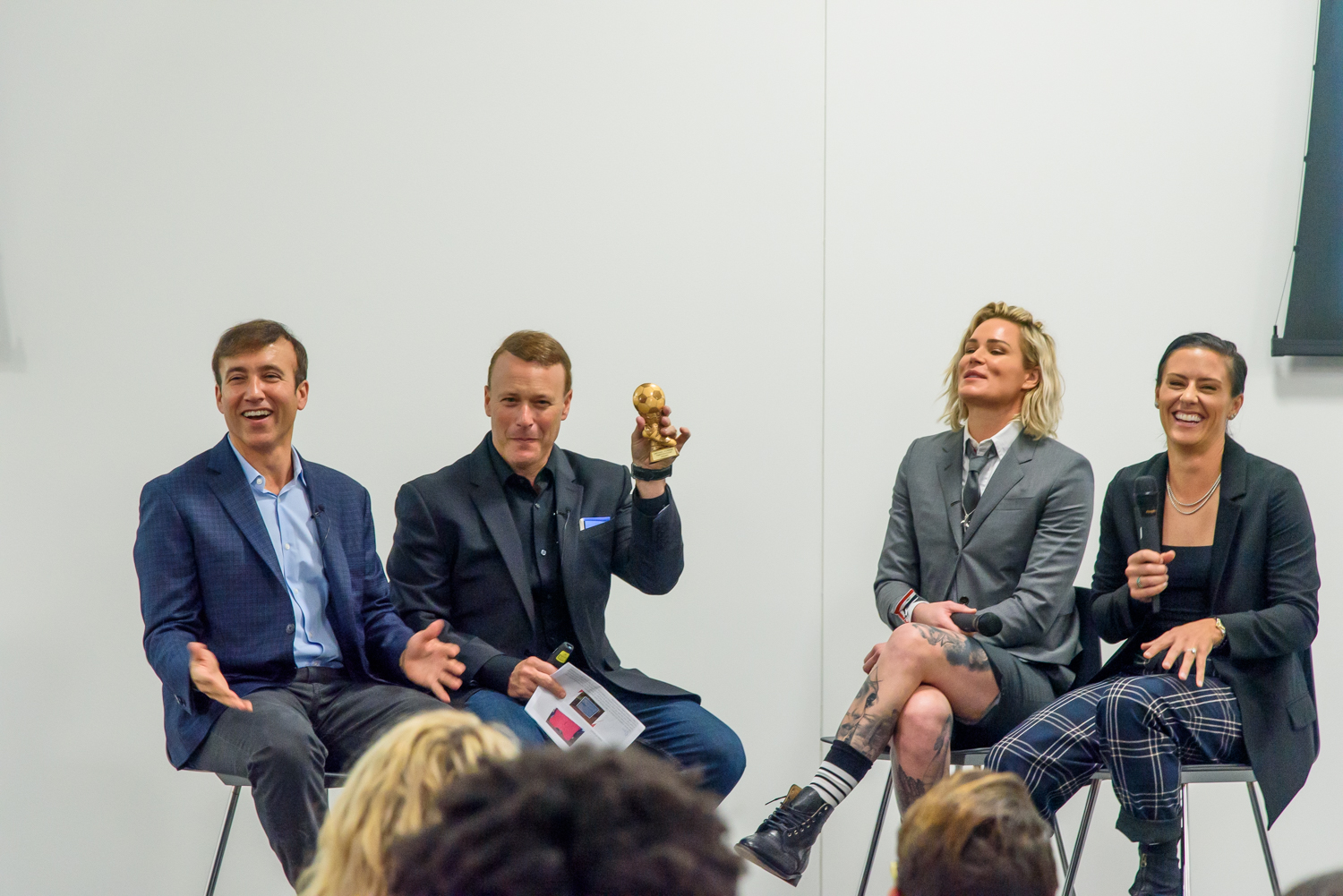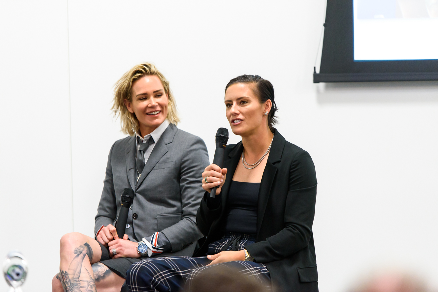 Special Guests Ali Krieger and Ashlyn Harris of the United States Women's National Soccer Team share a few words at the Co-Owner Sessions